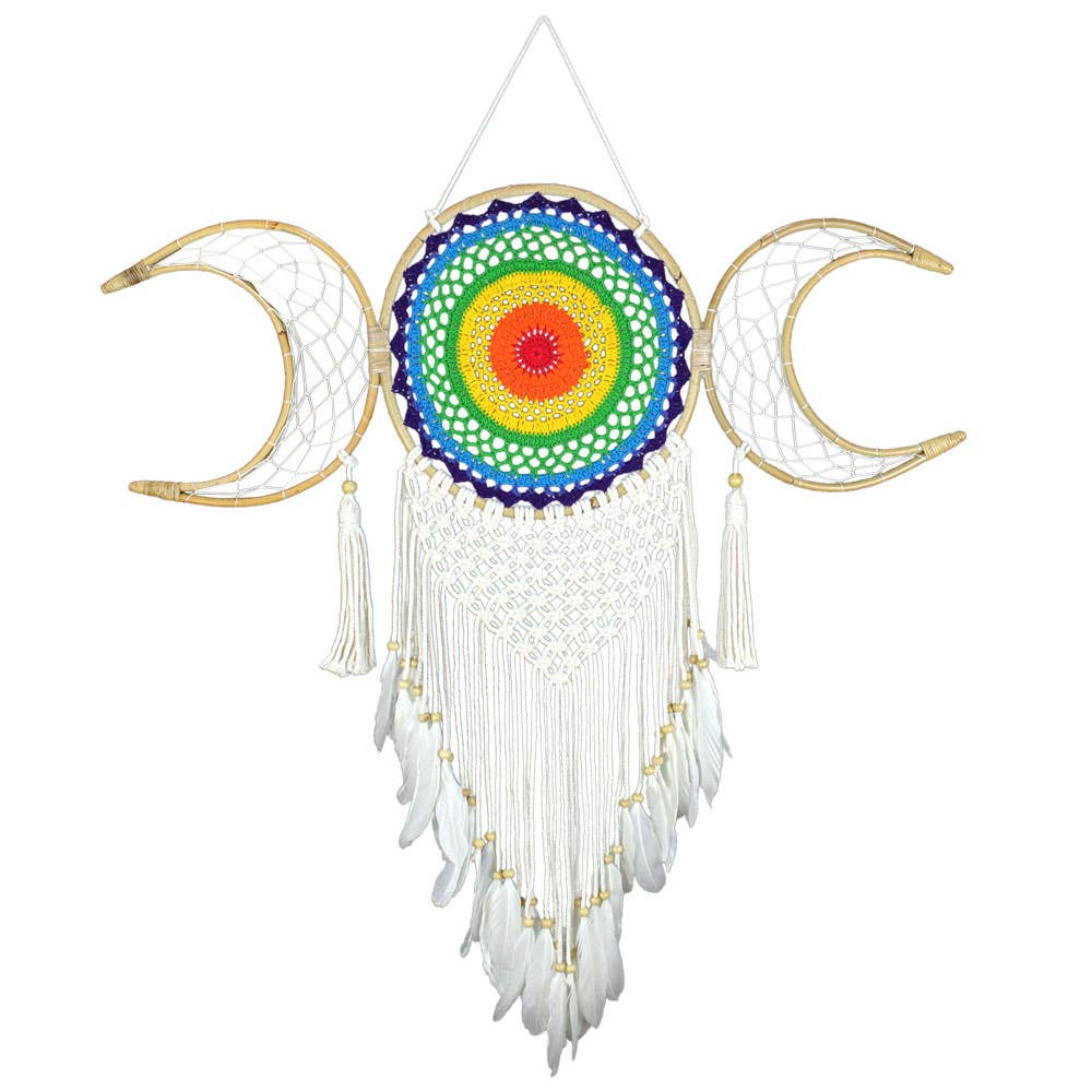 Discover the enchanting charm of the Dreamcatcher Rattan Triple Moon, a beautiful addition to your home decor.  This piece is a testament to our commitment to connecting global artisans with the US market, promoting a blend of cultural authenticity and modern design. This dreamcatcher, reflecting our global exposure, captures the essence of spiritual craftsmanship from exotic places like Nepal, Indonesia, and India. It's more than just a decor piece; it's a representation of our mission to deliver ethically sourced, hand-crafted beauty to your living space. Embellish your wall with this unique accent, and let it bring a touch of mystique to your home.