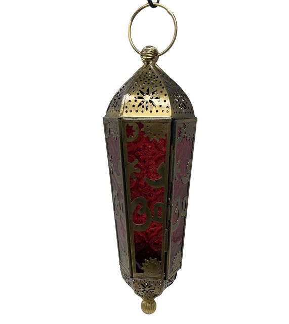 Brighten your space with this playful gold candle lantern featuring vibrant red windows. Standing 4" by 12", it casts a warm, colorful glow that dances with every flicker. Perfect for adding a splash of fun and good vibes to your home or meditation corner—let the OM spirit light up your day!
