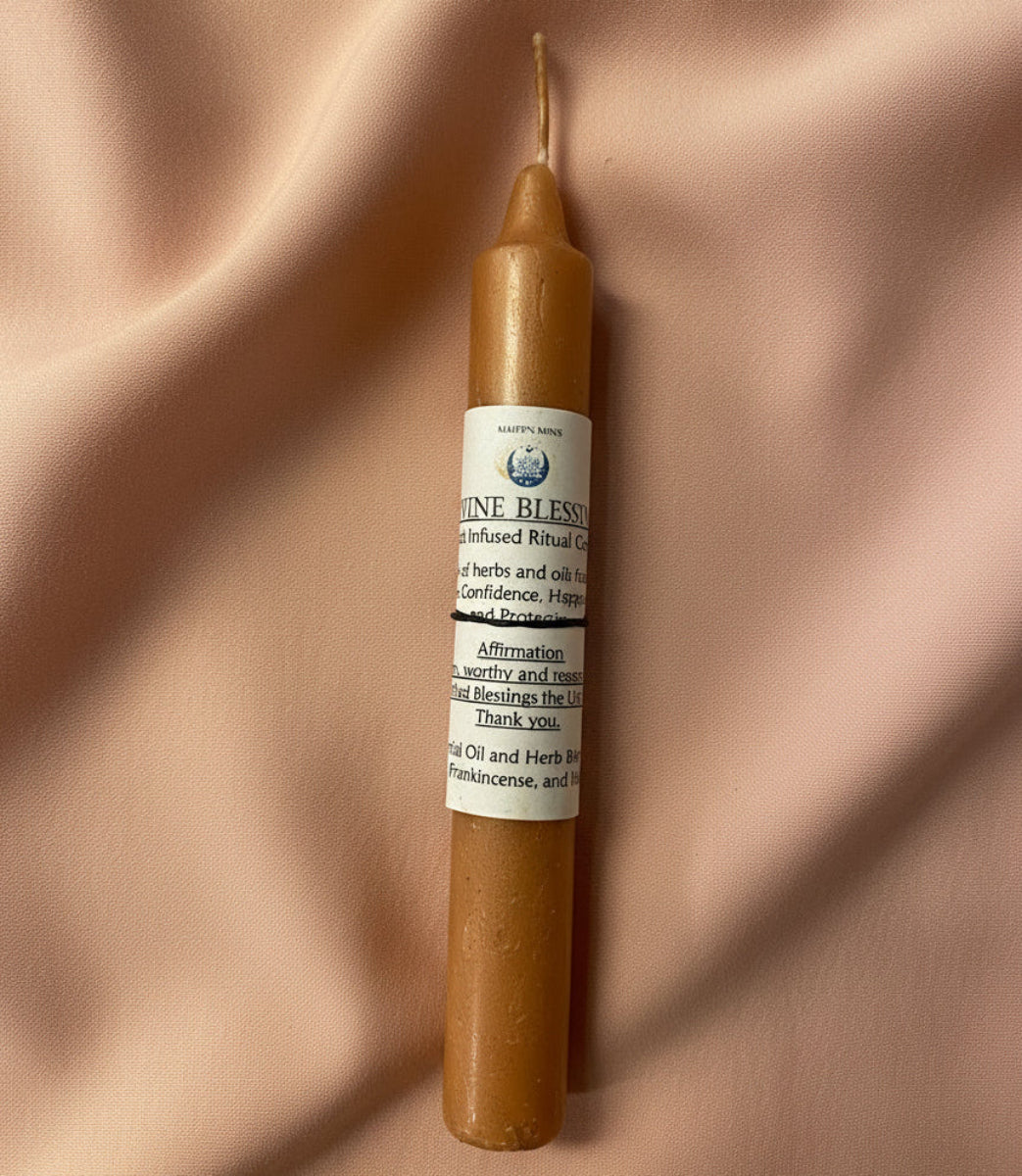 🔥 Reminder: Never leave a burning candle unattended. These tapers are spirit-charged vessels, made to help you receive with grace and courage.