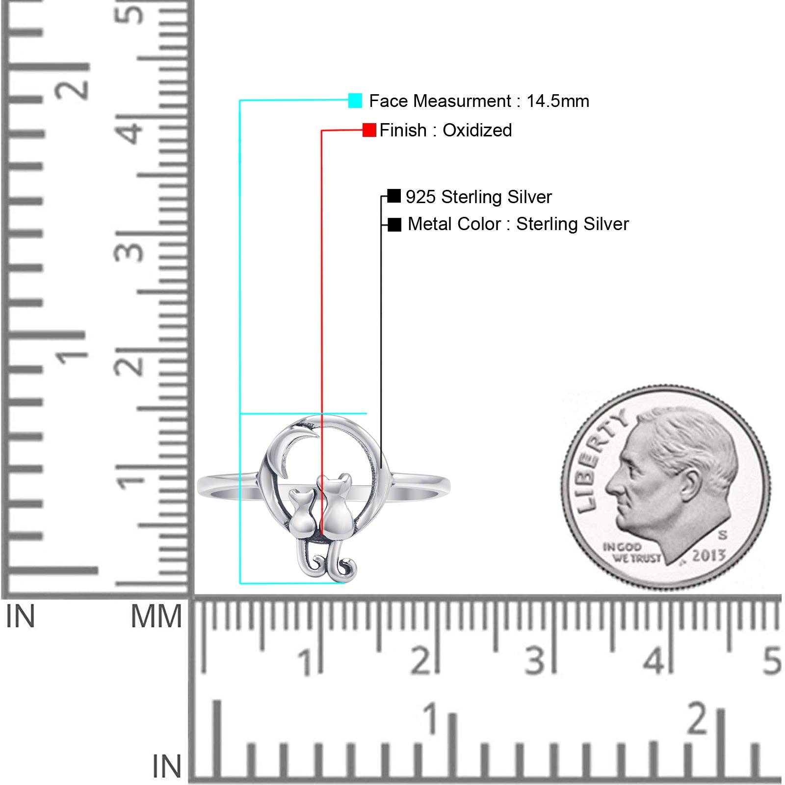 Gaze at the night sky with this enchanting Sterling Silver Cats & Moon Ring. Crafted from genuine .925 sterling silver, this oxidized beauty features an adorable cats silhouette nestled against a crescent moon—perfect for feline lovers and celestial dreamers alike. Measuring 14.5mm across the face, it's substantial enough to make a statement while remaining comfortable for everyday wear. The darkened oxidized finish adds vintage charm and mystique to this whimsical design. A celestial companion for your jewelry collection.