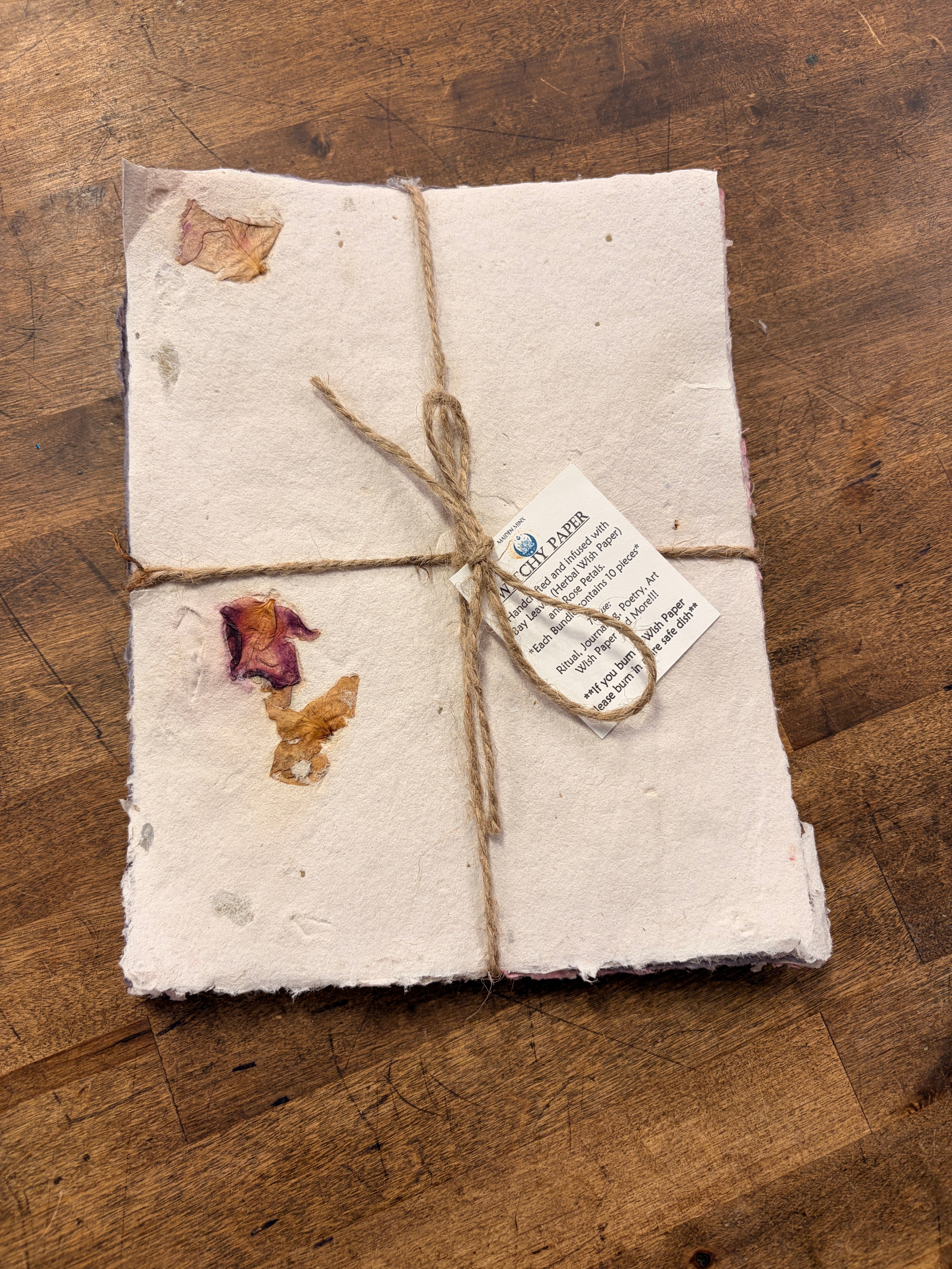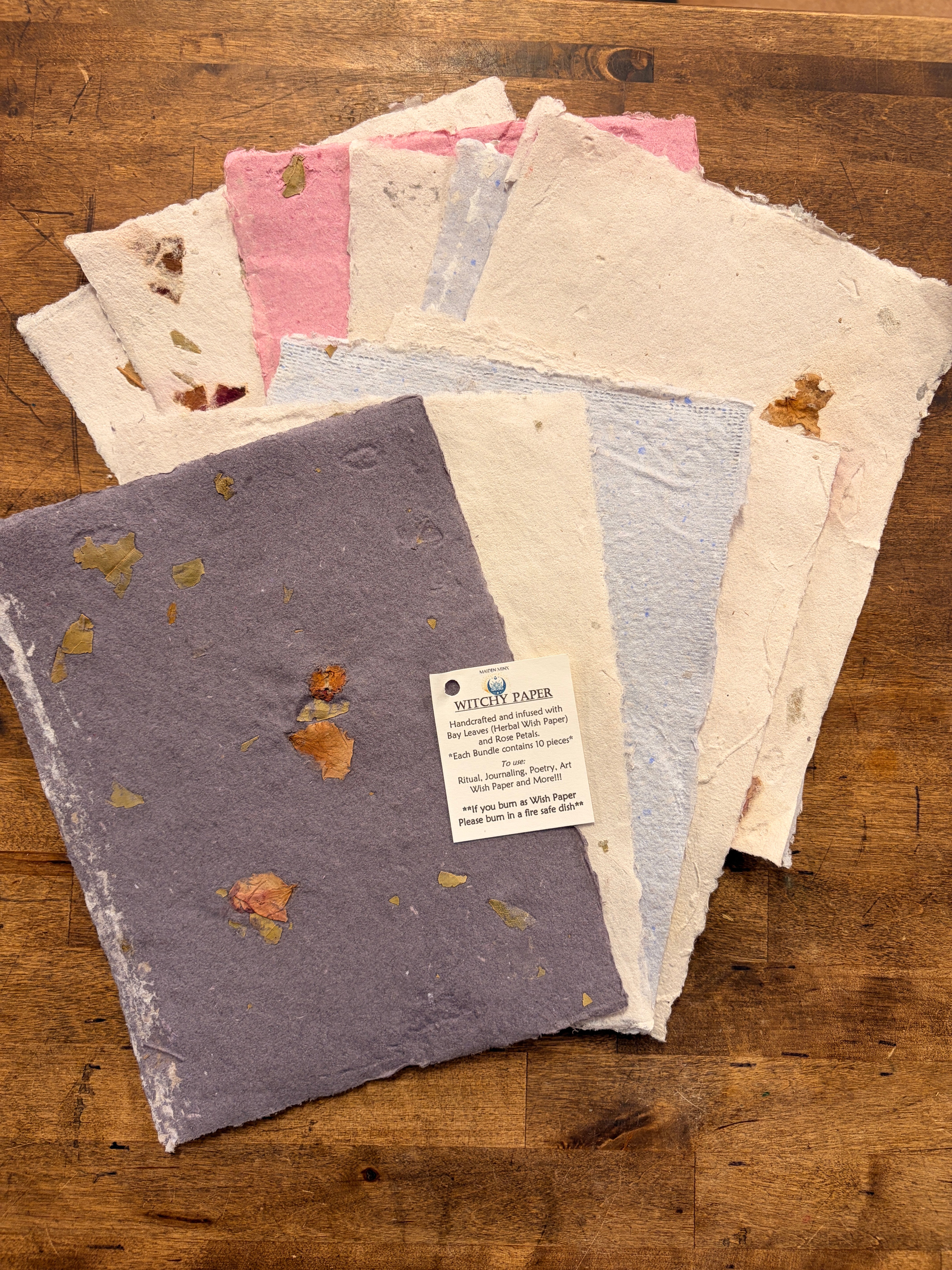 Maiden Minx presents Witchy Pages - handmade paper, perfect for recording spells and creating your own grimoire. Each sheet is crafted locally and imbued with magical energy, making it a powerful tool for any witch or spellcaster.